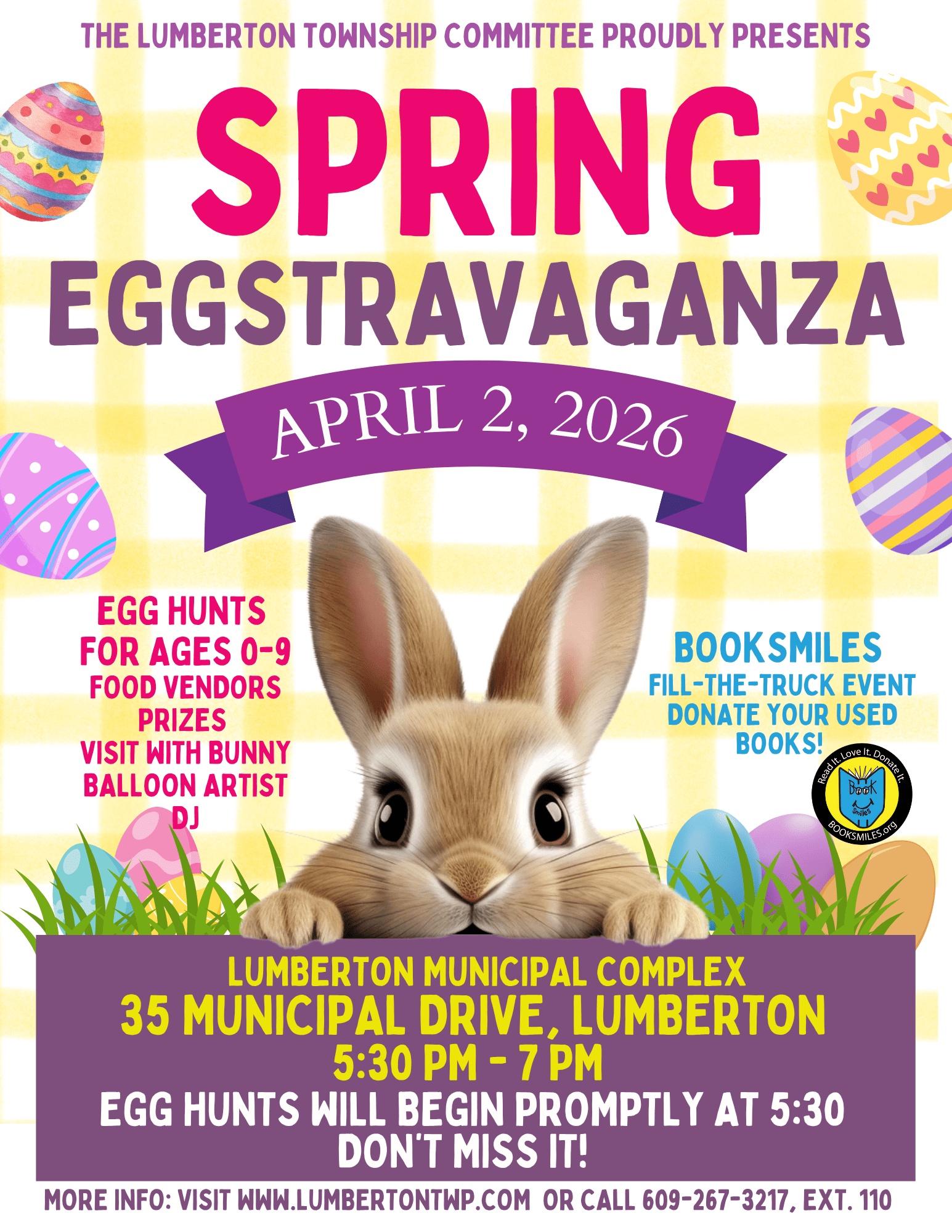HUNTS WILL BEGIN PROMPTLY AT 5:30, ONE AGE GROUP AT A TIME.  BE ON TIME SO YOU DON’T MISS IT! PRIZES FOR LUCKY EGGS THAT HAVE A COLORED TICKET!